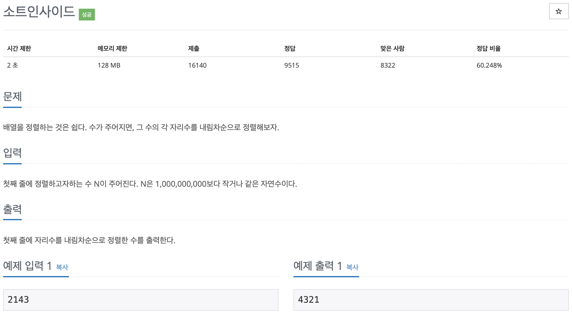 https://www.acmicpc.net/problem/1427