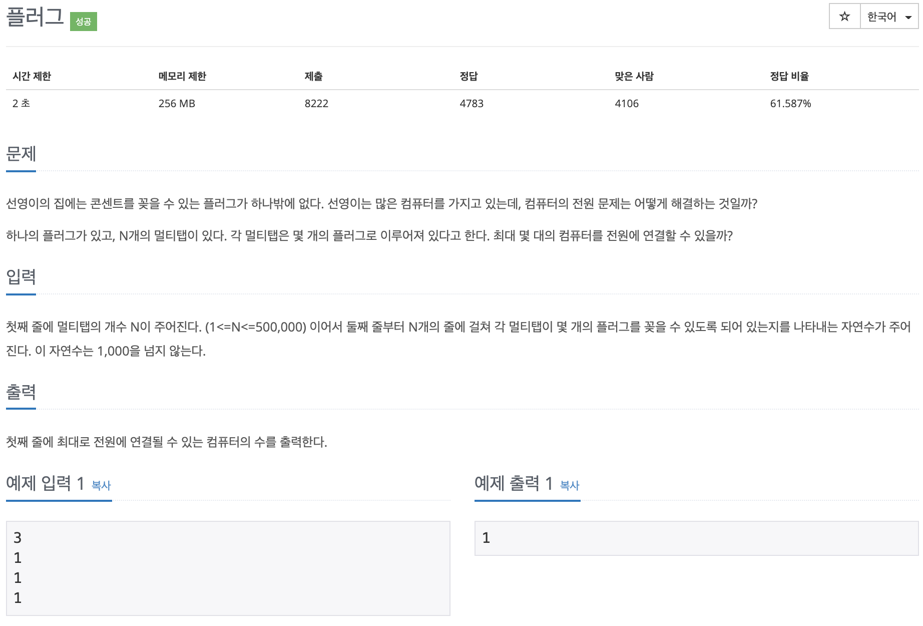https://www.acmicpc.net/problem/2010