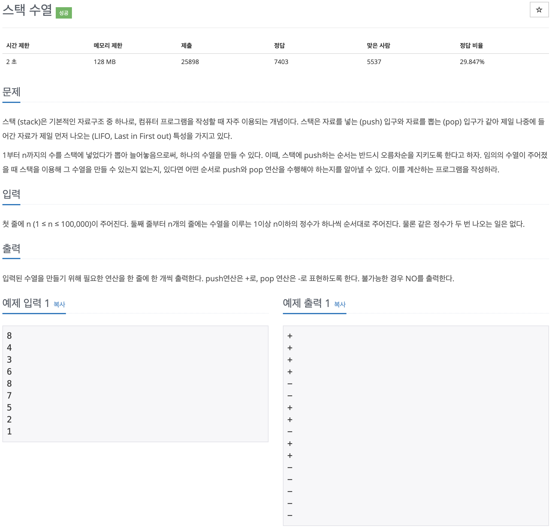 쉽게 접근하기 위해서 여러 리스트를 만들었다. 1) 정답 리스트 2) 정답과 비교할 리스트 3) 오름차순 리스트 4) 스택 5) 출력(+-)리스트
