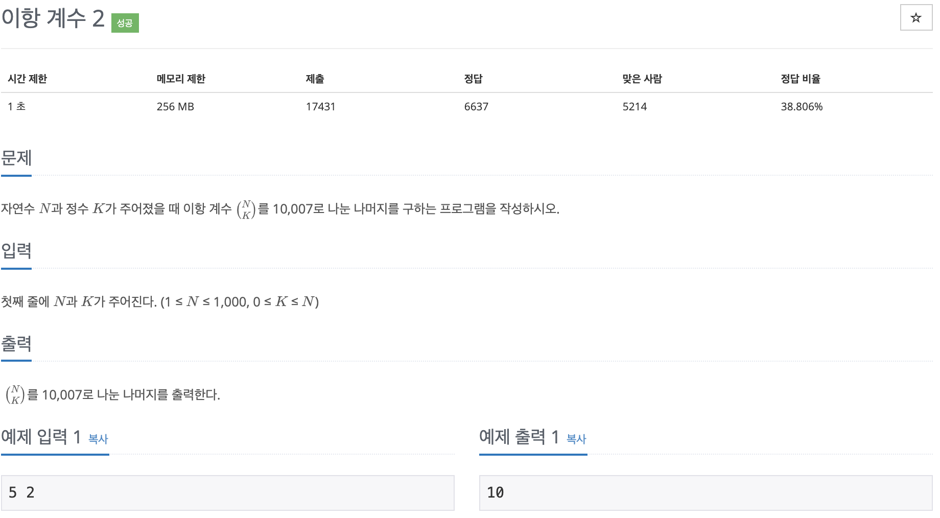 print(answer%10007)'Programming [Python] > 백준 알고리즘 솔루션' 카테고리의 다른 글