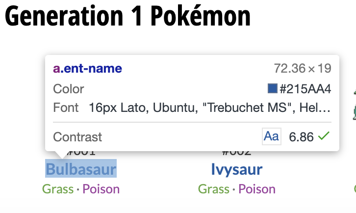 처음에는 위처럼 발라내 진다. 여기서 우리는 Bulbasaur란 text만 가져오면 된다. 이는 .text 메써드로 손쉽게 해결 가능하다.