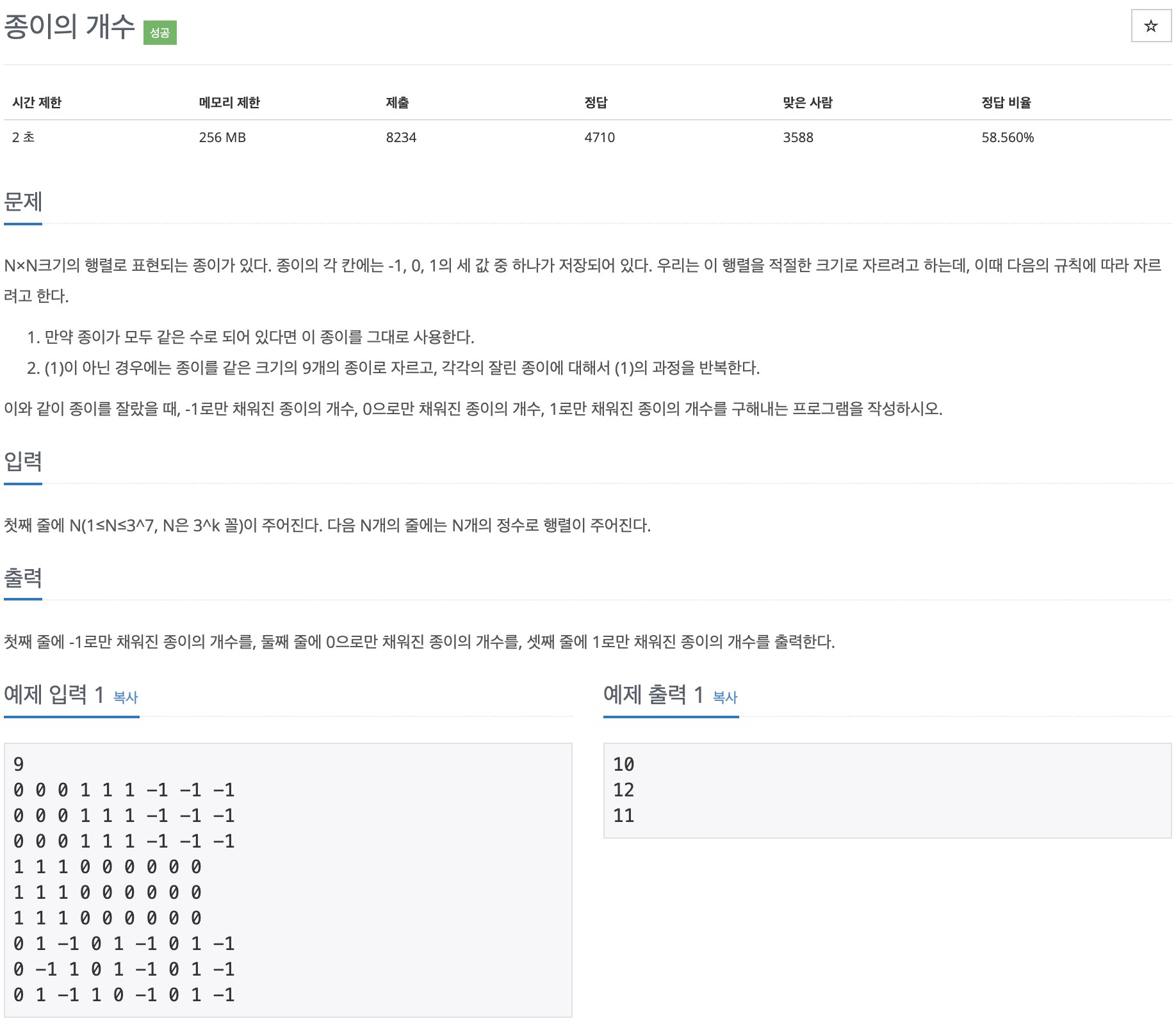쿼드 트리 문제들과 마찬가지로 풀되 (참고: https://claude-u.tistory.com/269) 4사분면이 아닌 9사분면으로 나누어 푼다.