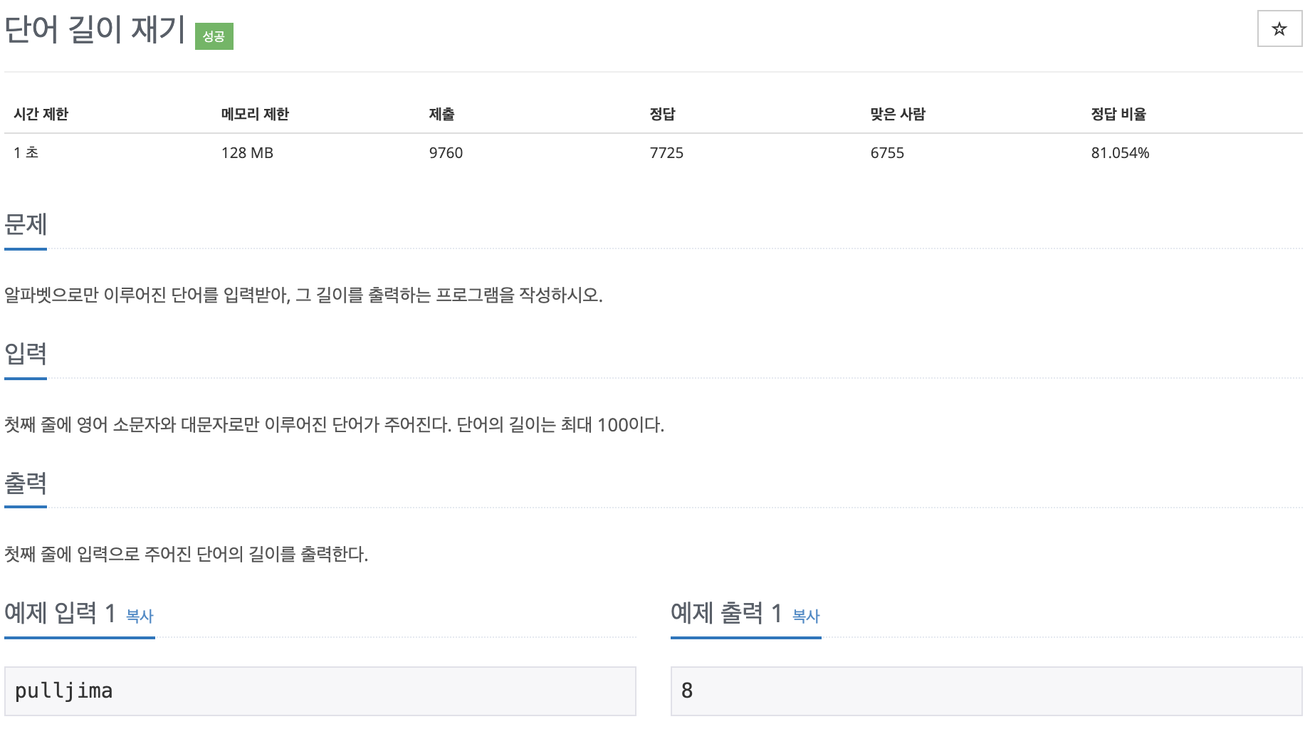 print(len(input()))'Programming [Python] > 백준 알고리즘 솔루션' 카테고리의 다른 글