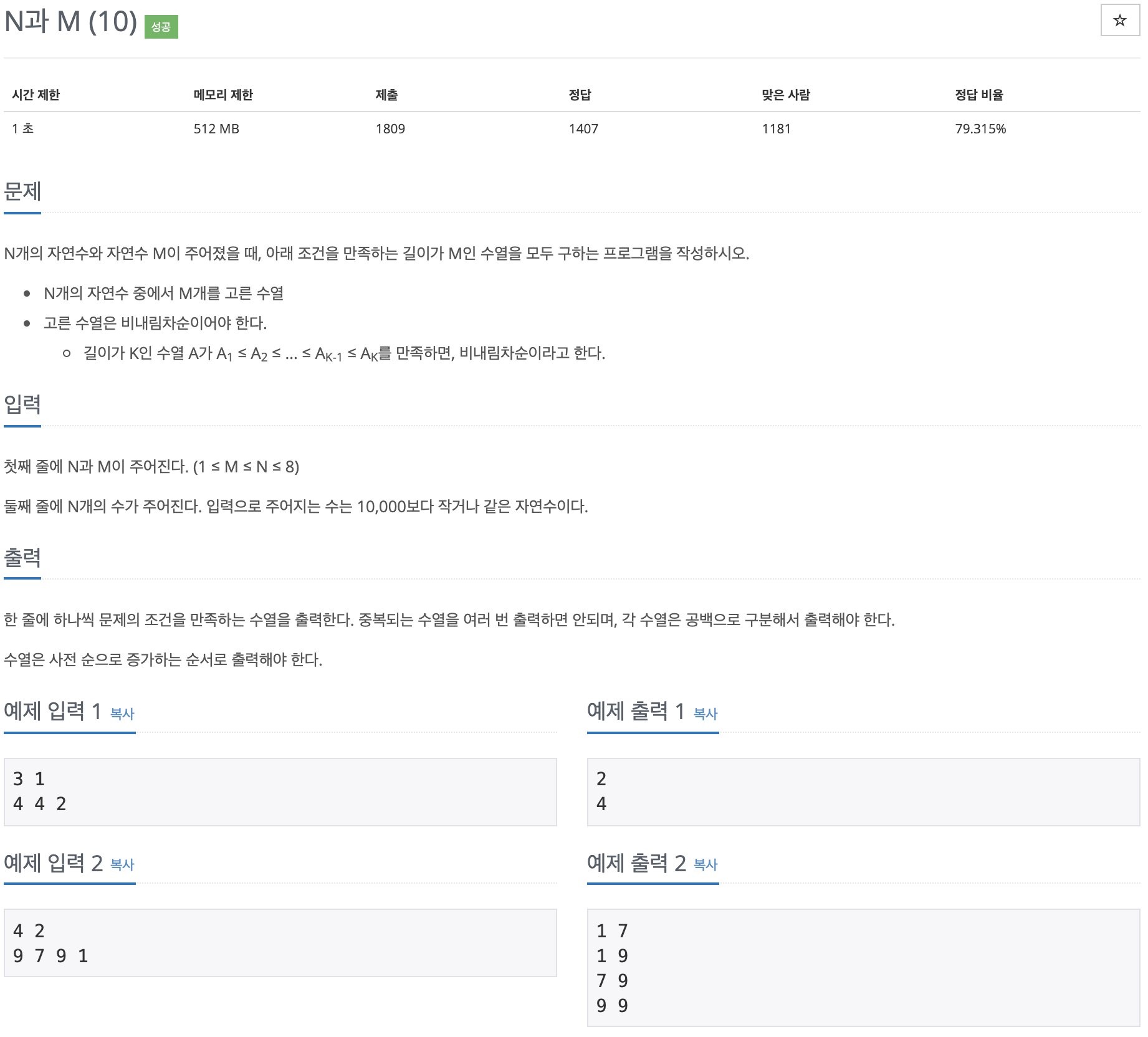 https://www.acmicpc.net/problem/15664
