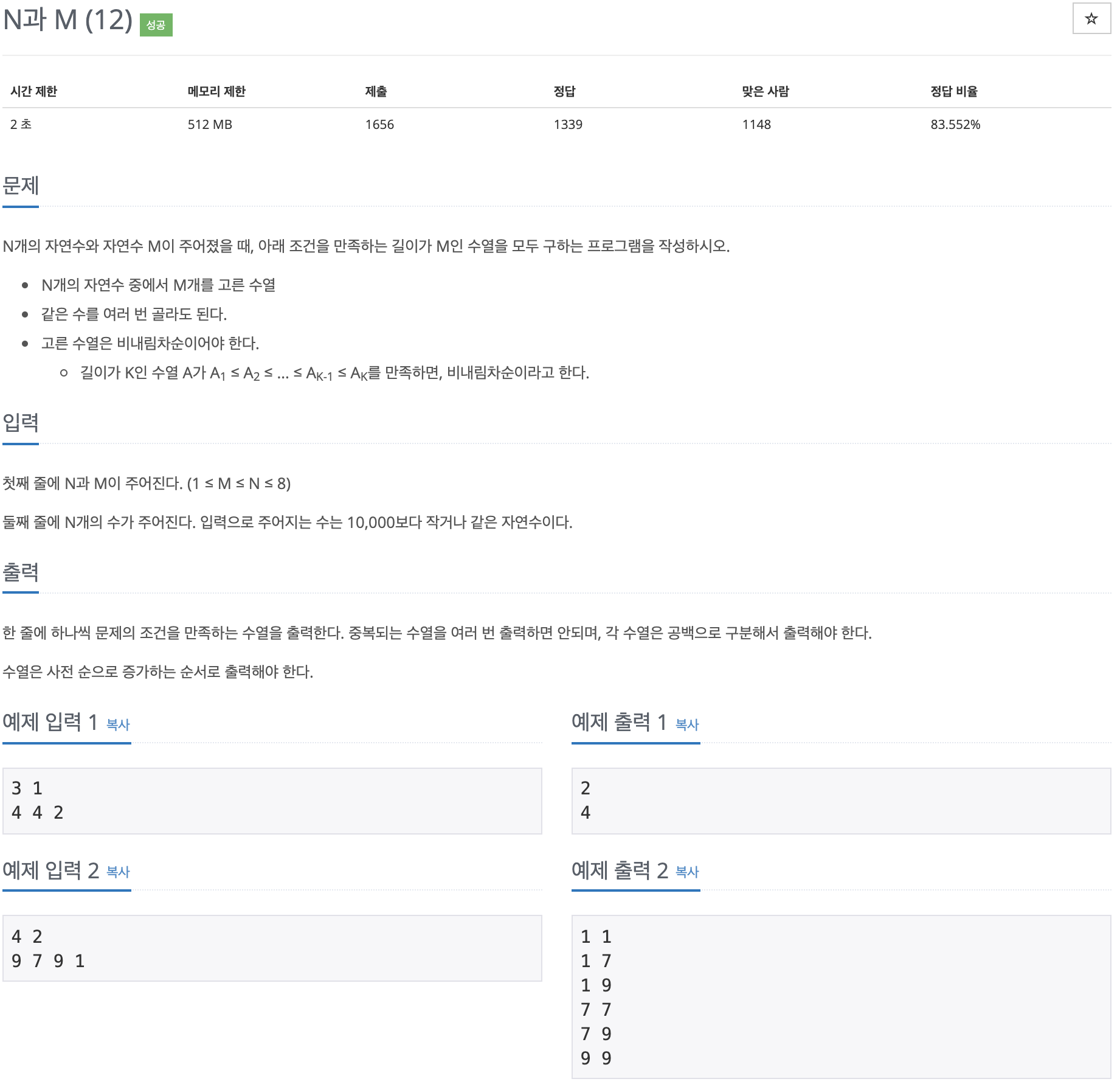 | #257 백준 파이썬 [15664] N과 M (10) - 조합 (0) | 2019.12.04 |