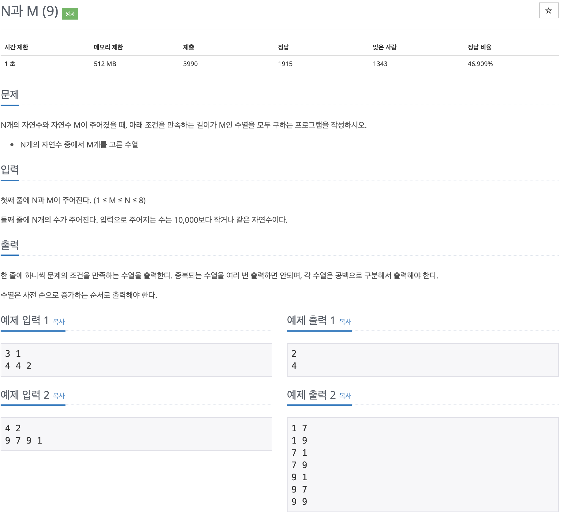 | #257 백준 파이썬 [15664] N과 M (10) - 조합 (0) | 2019.12.04 |