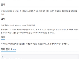 | #30 백준 파이썬 [4344] 평균은 넘겠지 (0) | 2019.02.21 |