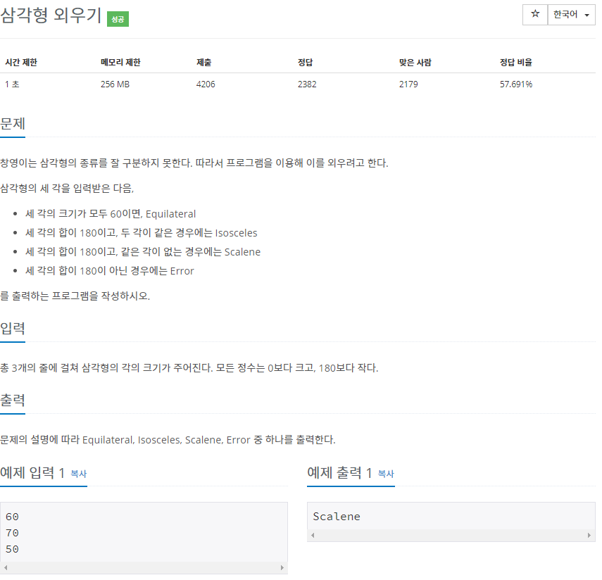 elif angle[0] == angle[1] or angle[1] == angle[2] or angle[2] == angle[0]: