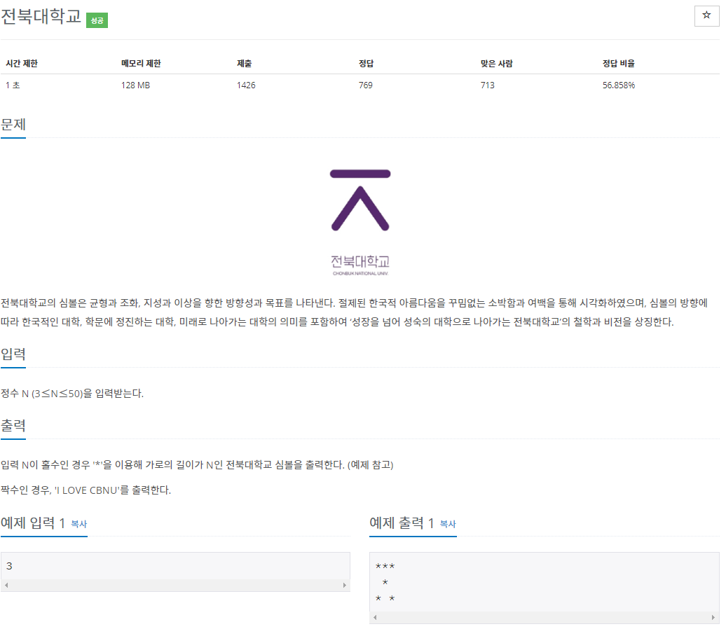 print("I LOVE CBNU")'Programming [Python] > 백준 알고리즘 솔루션' 카테고리의 다른 글