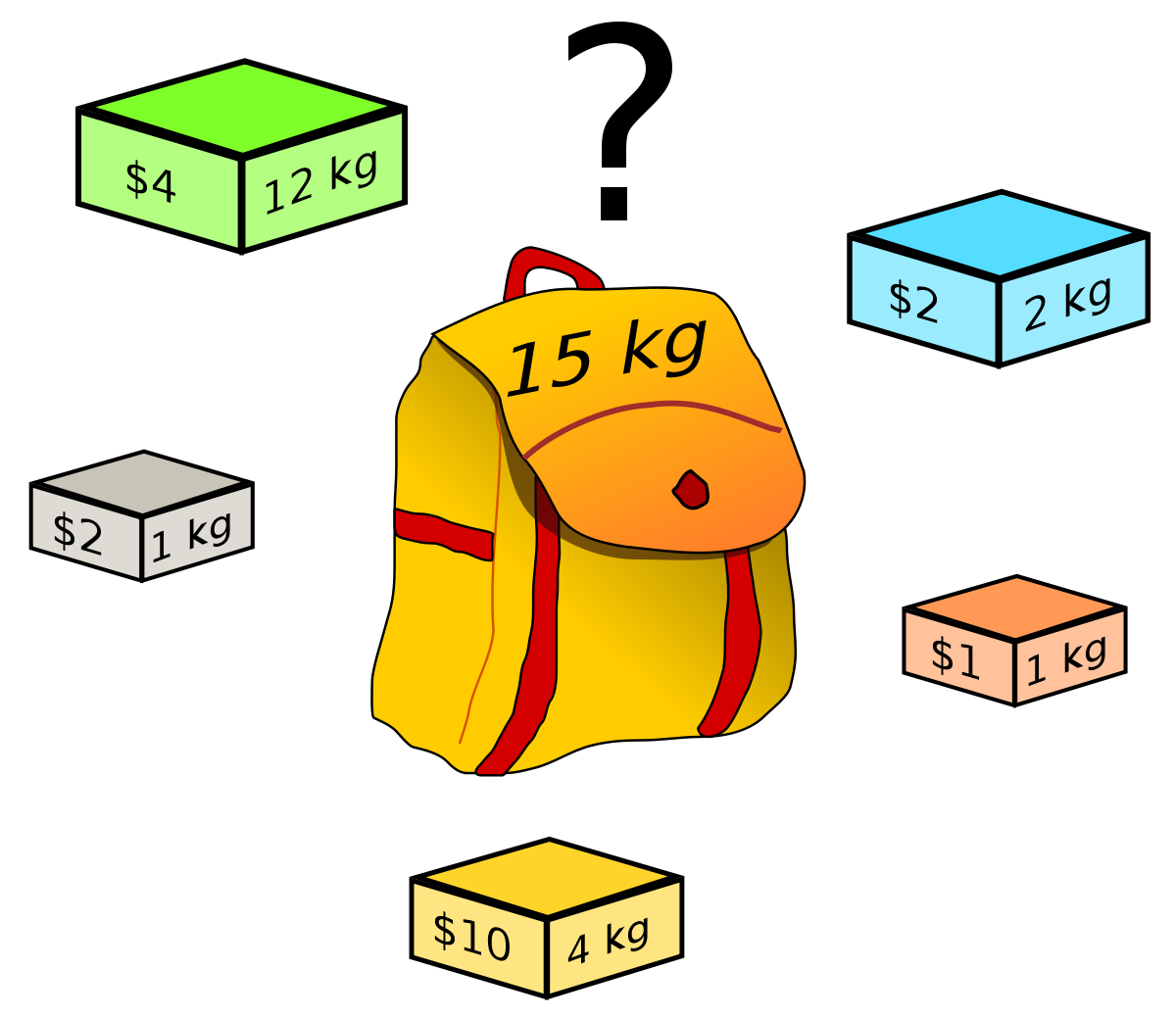 간단하게 말하면, 한 도둑이 훔치는 배낭에 담을 수 있는 무게의 최댓값이 정해져 있고, 일정 가치와 무게가 있는 짐들을 배낭에 넣을 때, 가치의 합이 최대가 되도록 짐을 고르는 방법을 찾는 문제이다.