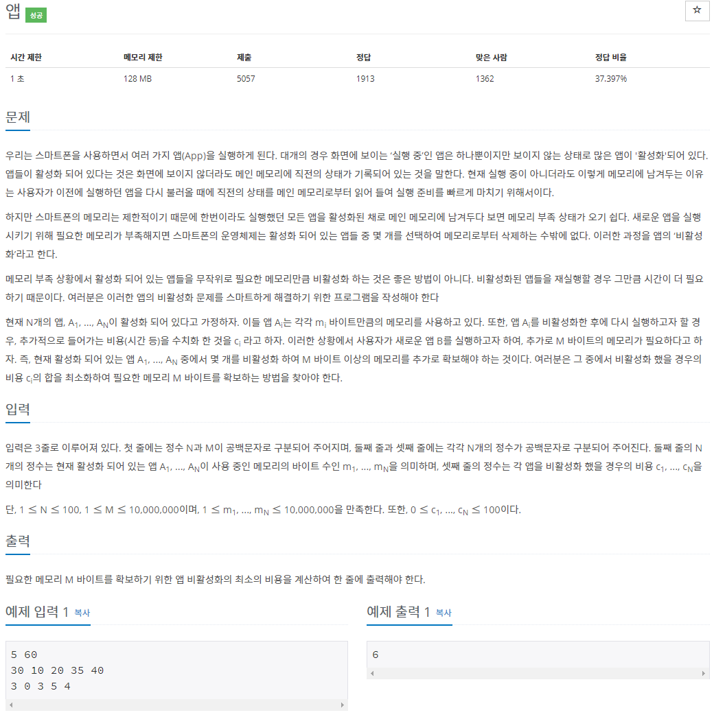 https://www.acmicpc.net/problem/7579