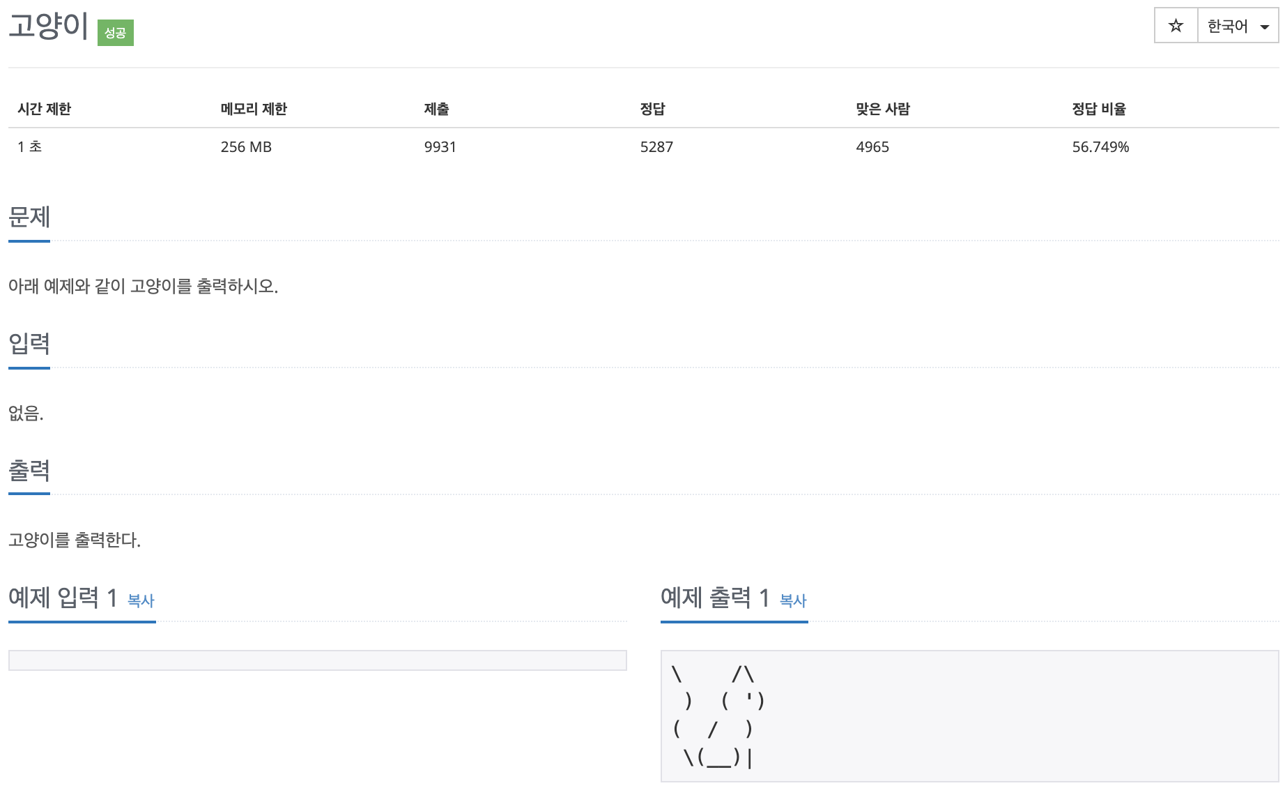 print("\ /\\\n ) ( ')\n( / )\n \(__)|")'Programming [Python] > 백준 알고리즘 솔루션' 카테고리의 다른 글