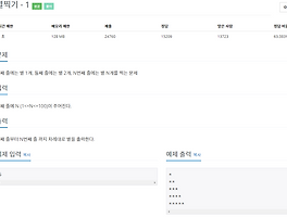 Programming [Python] (411) 썸네일형 리스트형 #18 백준 파이썬 [2438] 별찍기 - 1 #18 백준[2438] 별찍기 - 1https://www.acmicpc.net/problem/2438 #18 [2438] Solutiona=int(input()) for i in range(1,a+1): print("*"*i) #17 백준 파이썬 [2739] 구구단 #17 백준[2739] 구구단https://www.acmicpc.net/problem/2839 #17 [2739] Solutiona=int(input()) for i in range(1,10): print("%d * %d = %d" %(a, i, a*i)) #16 백준 파이썬 [2742] 기찍 N #16 백준[2742] 기찍 Nhttps://www.acmicpc.net/problem/2742 #16 [2742] Solutiona=int(input()) for i in range(a): print(a-i) #15 백준 파이썬 [2741] N 찍기 #15 백준[2741] N 찍기https://www.acmicpc.net/problem/2741 #14 백준[2741] Solutiona=input() b=int(a) for i in range(b): print(i+1) #14 백준 파이썬 [2839] 설탕 배달 #14 백준[2839] 설탕 배달https://www.acmicpc.net/problem/2839 #14 [2839] Solution-Easy Codingorder = int(input()) if order % 5 == 0: print(order // 5) elif order % 5 == 3: print(order // 5 + 1) elif order // 5 - 1 >= 0 and order - (5 * (order // 5 - 1)) == 6: print((order // 5 - 1) + 2) elif order // 5 - 1 >= 0 and order - (5 * (order // 5 - 1)) == 9: print((order // 5 - 1) + 3) elif order // 5 - 2 >= .. #13 백준 파이썬 [2558] A+B-2 #13 [2558] A+B-2https://www.acmicpc.net/problem/2558 #13 [2558] Solutiona= int(input()) b= int(input()) print(a+b) #12 백준 파이썬 [10430] 나머지 #12 [10430] 나머지https://www.acmicpc.net/problem/10430 #12 [10430] Solutiona,b,c= map(int, input().split()) print((a+b)%c) print((a%c + b%c)%c) print((a*b)%c) print((a%c * b%c)%c) #11 백준 파이썬 [10869] 사칙연산 #11 [10869] 사칙연산https://www.acmicpc.net/problem/10869 #11 [10869] Solutiona,b= map(int, input().split()) print(a+b) print(a-b) print(a*b) print(a//b) print(a%b) 이전 1 ··· 47 48 49 50 51 52 다음